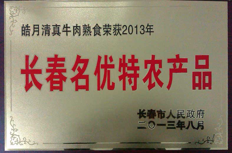 皓月清真牛肉熟食榮獲2013年長春名優(yōu)特農(nóng)產(chǎn)品