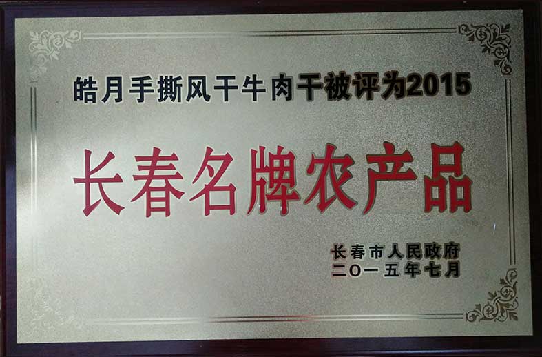 皓月手撕風干牛肉干被評為2015長春名牌農(nóng)產(chǎn)品